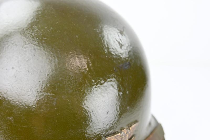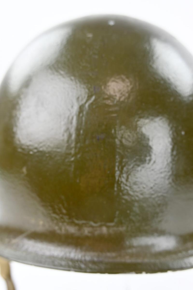 Also on the reverse side of the helmet is the wartime 'follow me' officer bar present underneath the paint.