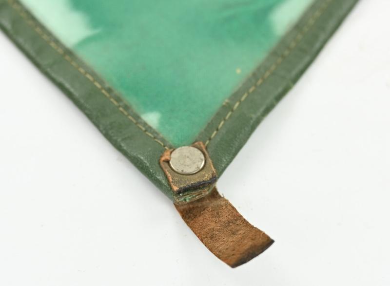 In a very good condition a German 'Deutsche Jägerschaft' (German Hunting Association) Pennant. The double-sided pennant is sized approximately 29 x 19 cms and comes with the rain cover in a good condition. Sadly the corner leathers are damaged but great and rare item for display!