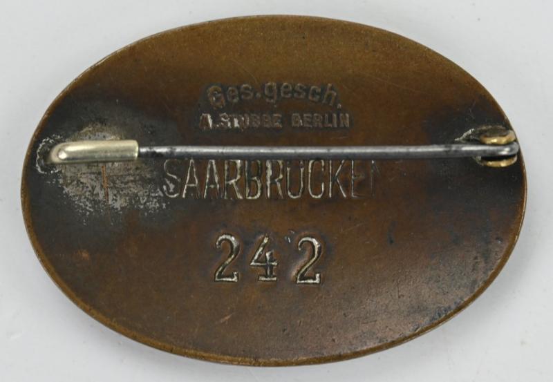 The rare early badge, maker marked on the reverse A.Stubbe. Berlin. With the protected by law Ges.gesch. and nurse numbered 242 and issued in the DRK region Saarbrucken.
