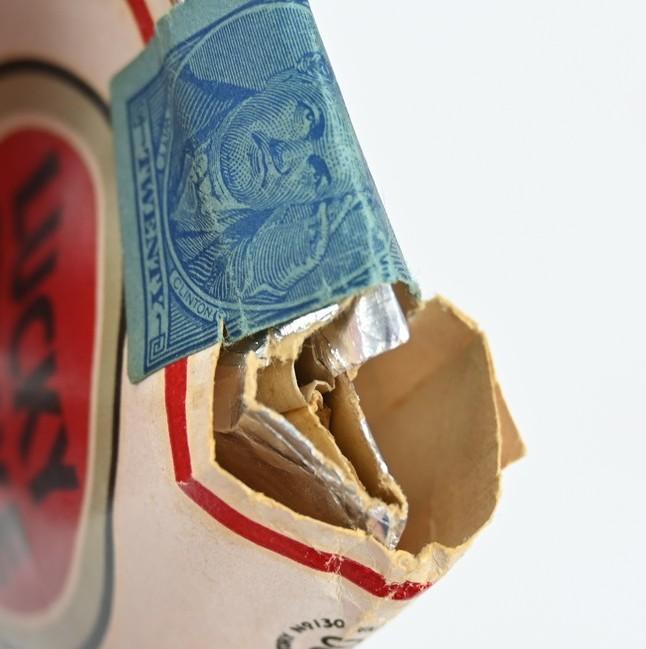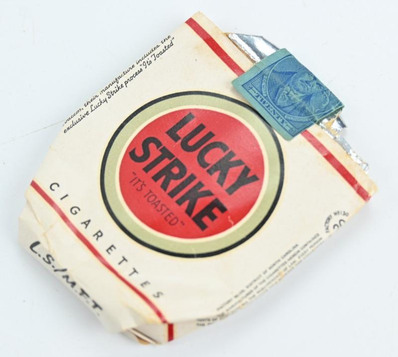 In a nice used condition a US WW2 Package of Lucky Strike Cigarets.