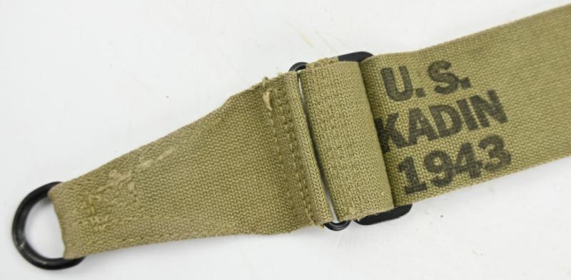In a very good condition a US WW2 Carrying Sling. The sling was used for musset bags, general purpose bags etc. The sling is nicely maker marked by Kadin and dated 1943.