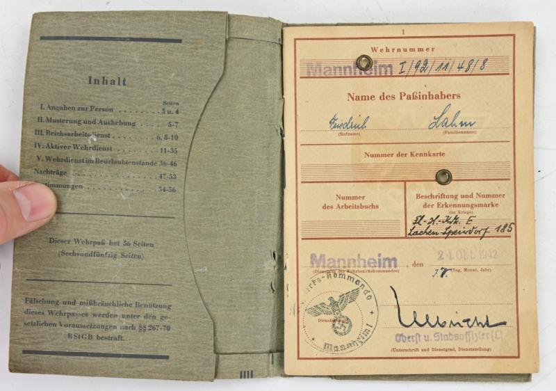 German LW Wehrpass 'Inspector Friedrich Lahm'