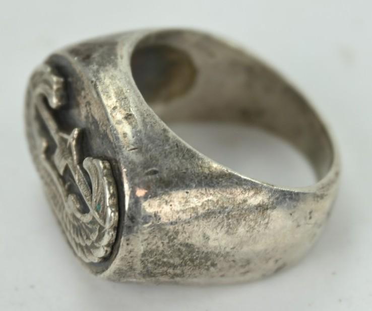 In a very nice condition a US WW2 silver made ring with on the front the Glider Wing Logo attached. The ring is not sterling marked but a clear sliver ring.