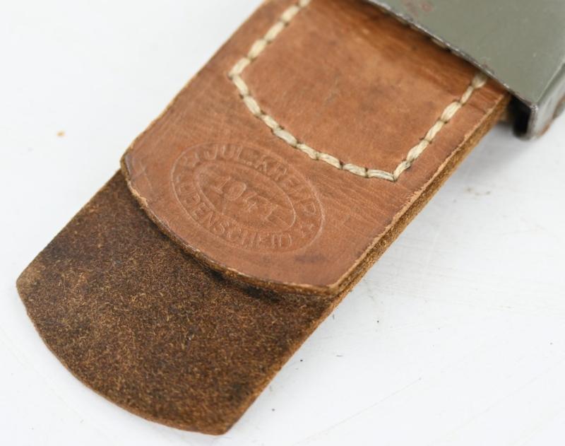 The mid war steel beltbuckle is marker marked by Julius Kremp from Lüdenscheid, dated 1941 on the leather tab and also on the reverse side of the buckle with IKA41.
