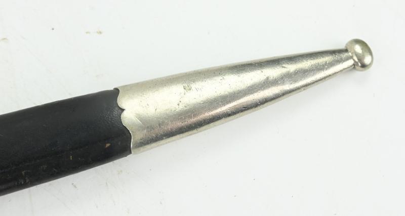 The bayonet comes with a black leather scabbard and has also a black leather frog attached from the company of L. Krumm & Langhardt from Offenbach am Main and is dated 1940.
