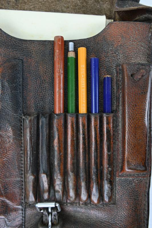 The mapcase comes with the original pencils still attached and has two early maps inside and a notebook as found.