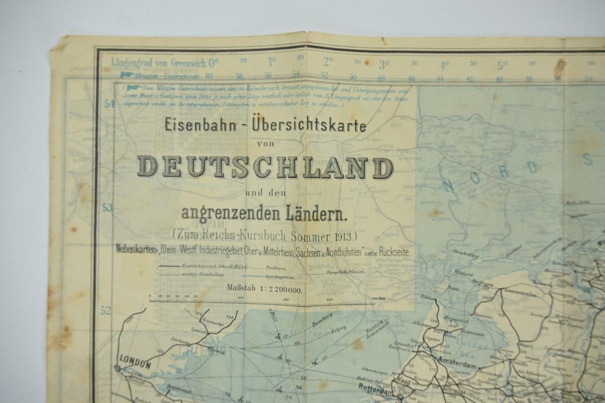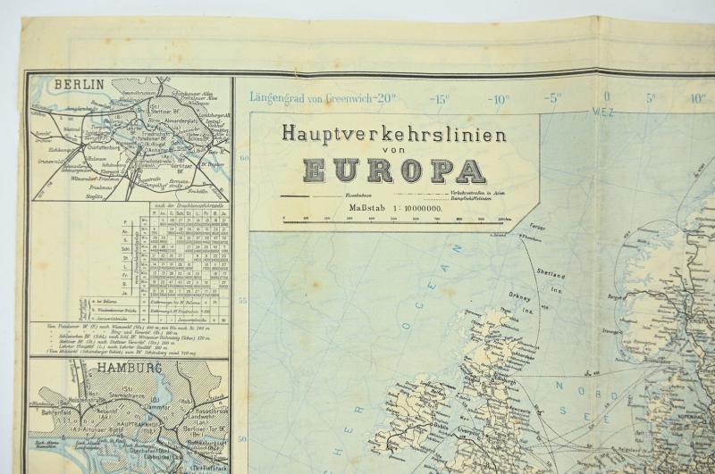 In a very good condition a hard to find German WW1 Period Mapcard of the 'Deutchland'. The double sided mapcard comes in size of approx 60x80cm and is dated 1913. A very stunning mapcard for WW1 display!