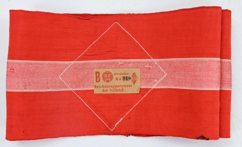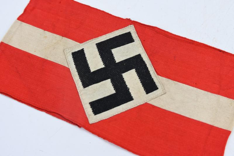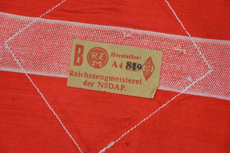 In a very good condition a German Hitler Youth Armband. The linnen based armband comes with a sewn stiched swastika on a white linnen square. On the inside is still the label present!