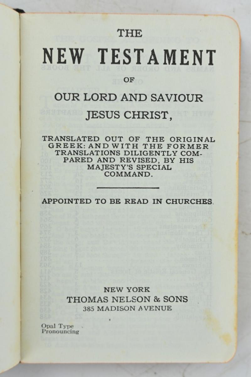 In a very good condition a US WW2 Shield Bible / New Testament. The bible comes with the name of the one presented to Sgt. Hugh Kidwell and has on the cover the text 'May god bless you'. A very good example!