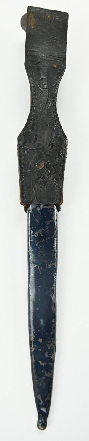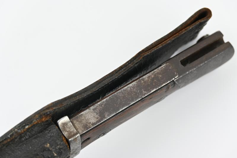 Attached to the bayonet is a leather frog as found.