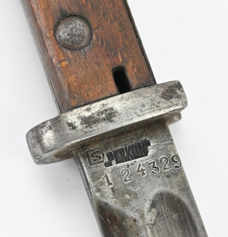 In a very nice condition a hard to find Polish bayonet, pattern 1924 (wz.24), made by the Society of the Motors Factory Perkun.