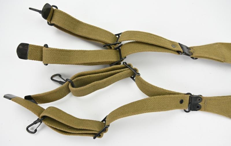 In a very good condition a US WW2 M-1936 pair of suspenders. The suspenders are maker marked and 1942 dated. A very nice example!