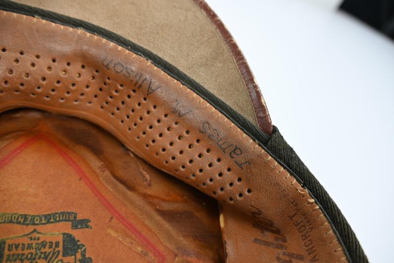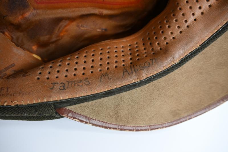 The cap comes with the original visor '50 missions' cap badge for Officers and is named on the inside to James M. Allison.
