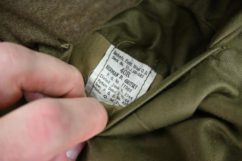 The jacket comes in a size 40R and has the orginal oil label still present and dated 1944.
