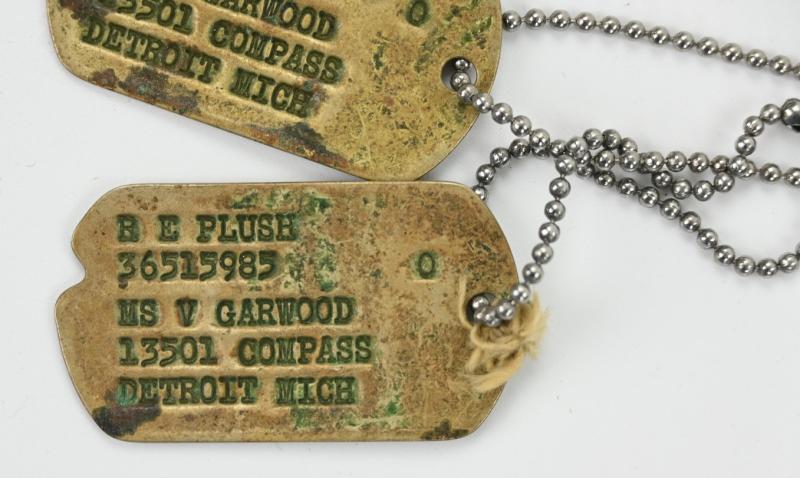 In a very nice condition a US WW2 Dog-Tag set on the name of 'Richard E. Plush'. RIchard was a US Army Private during WW2. A very nice early set of 1st pattern dog-tags!