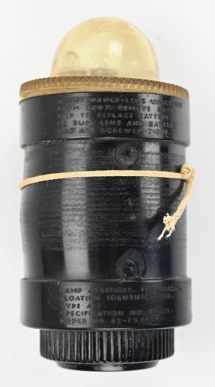 Standardized in 1942, it was a waterproof black plastic floating identification lamp for use on inflatable boats.