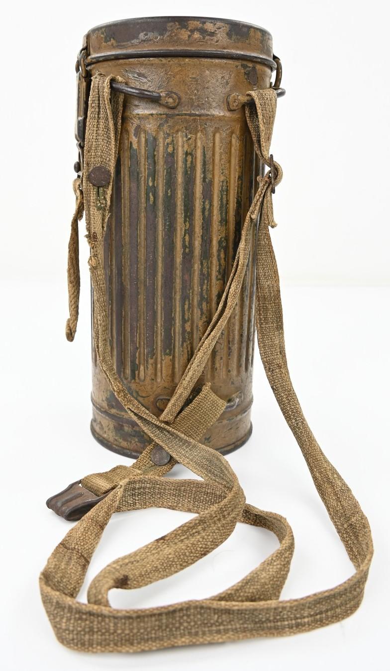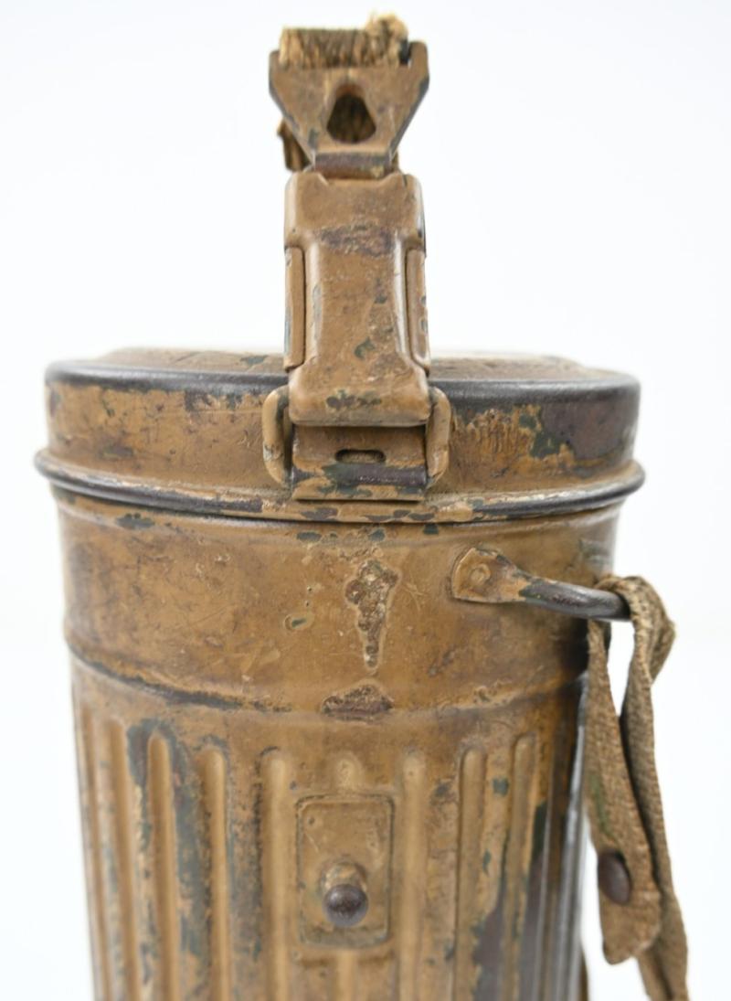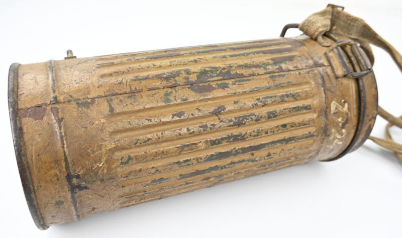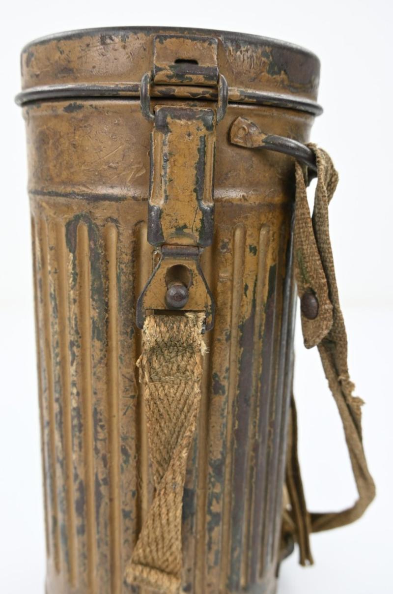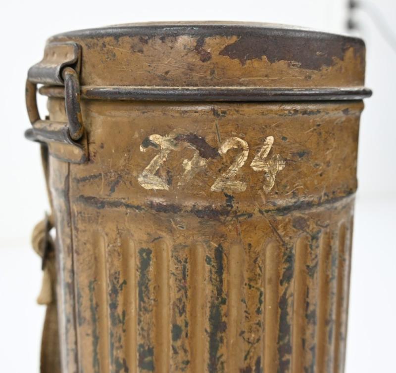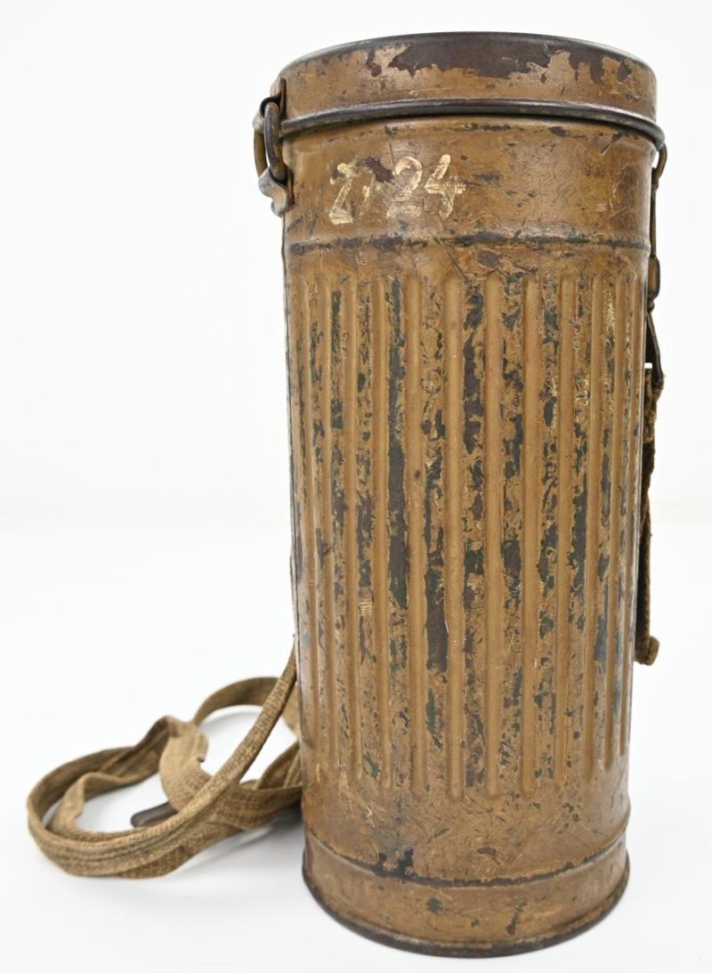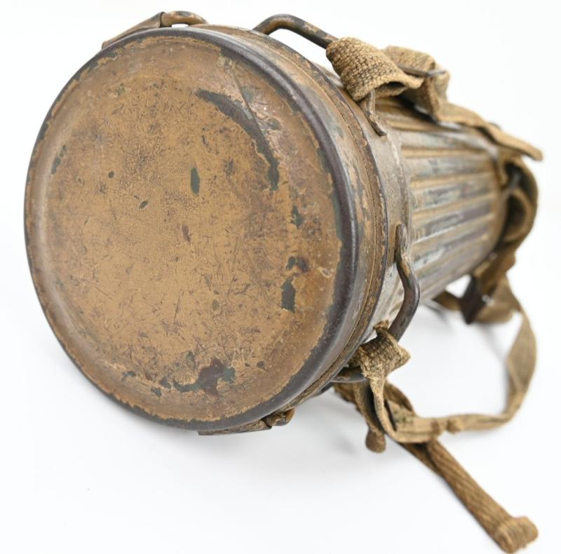 The matching set (Same soldier number on gasmask and cannister) comes with a late war rubber made gasmask in size 3.