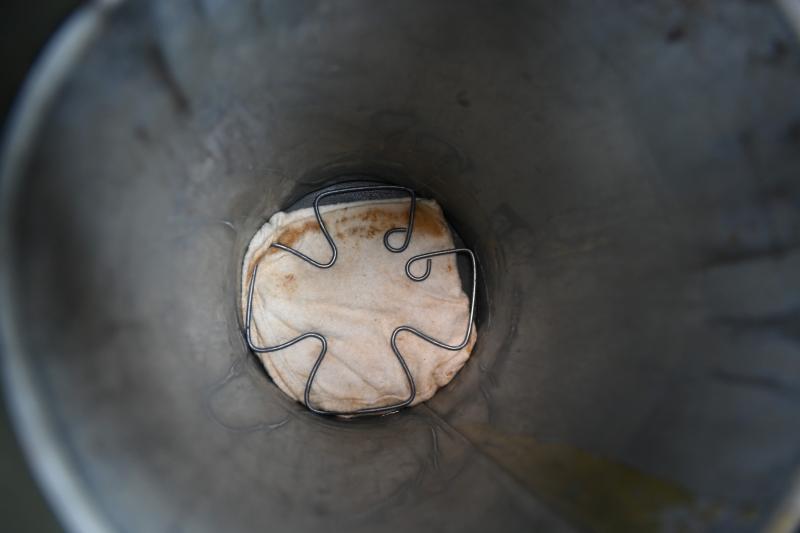 The cannister has on the bottom still the original cleanign cloth and spring attached.