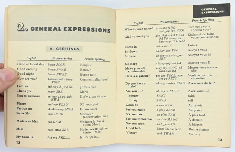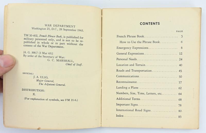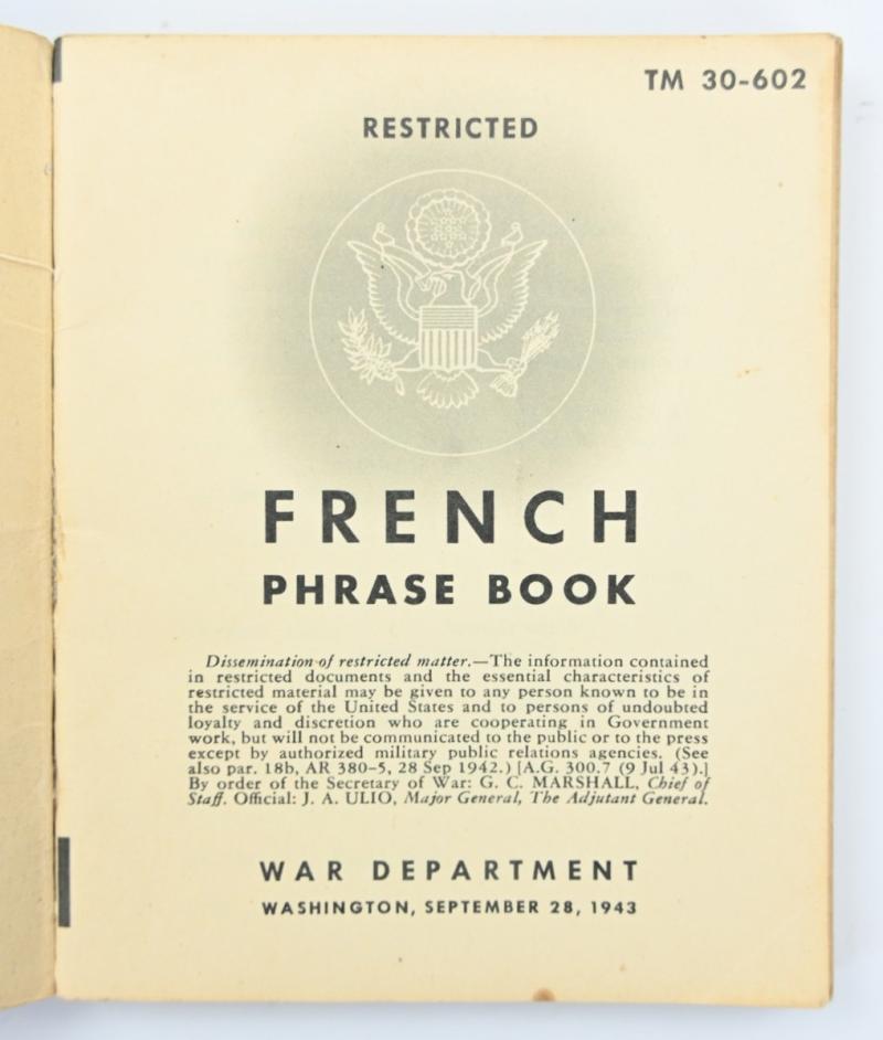 In a very good condition a US WW2 French Phrase Book. The book is nicely dated 1943 and comes in a complete condition.