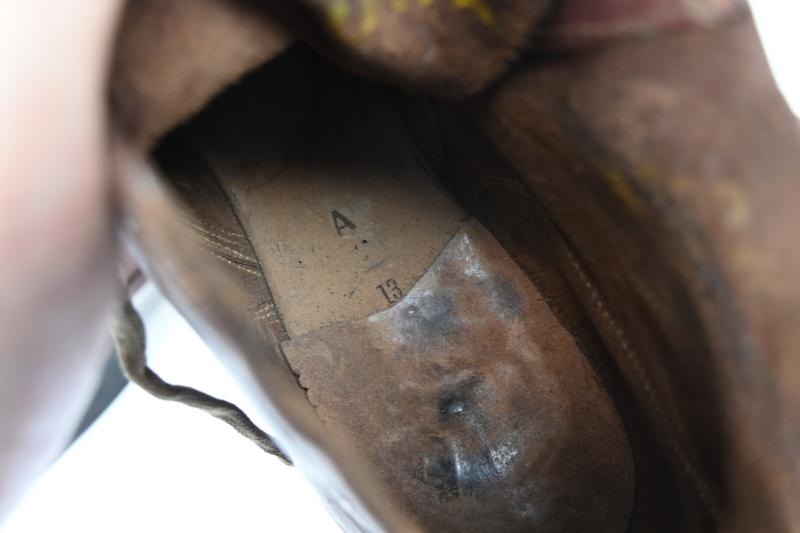 The shoes comes in a large mannequin size 13 and are maker marked on the inside tong and have also the laundrynumber of the owner present inside.