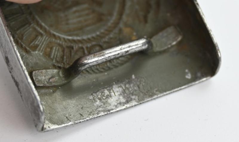 In a used condition a German Wehrmacht beltbuckle. The late war steel beltbuckle is marker marked by Noelle & Hueck from Lüdenscheid and dated 1942.