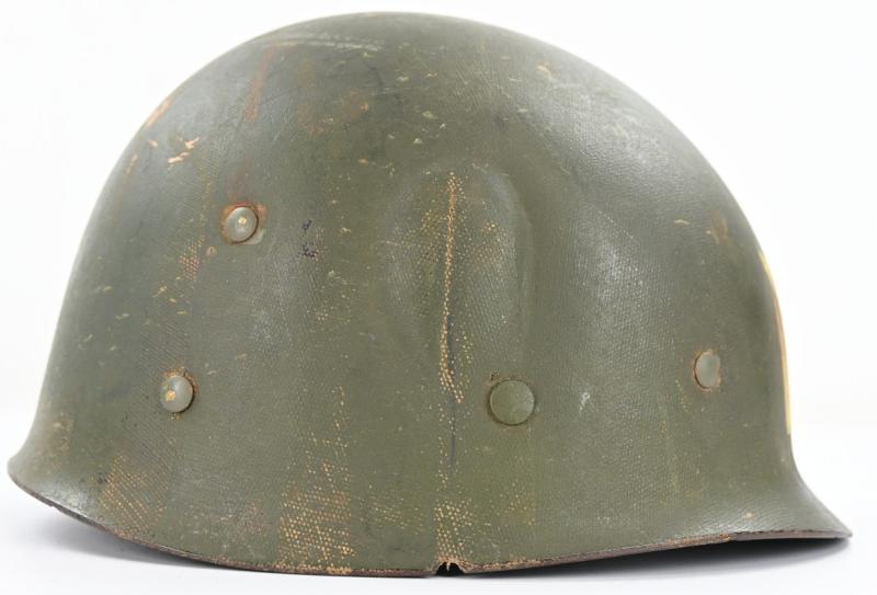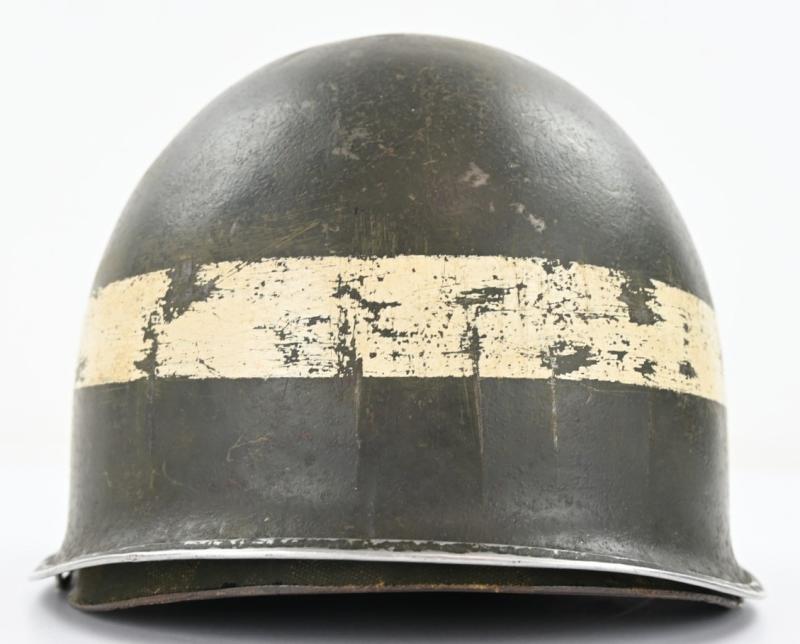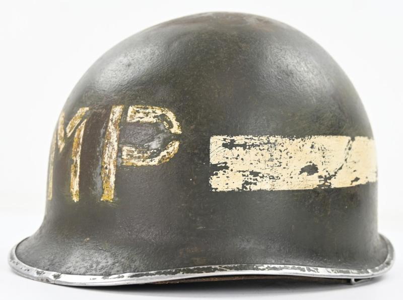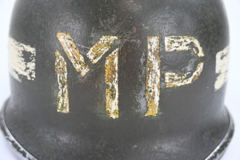 In a nice used condition a US WW2 Military Police Helmet Set.