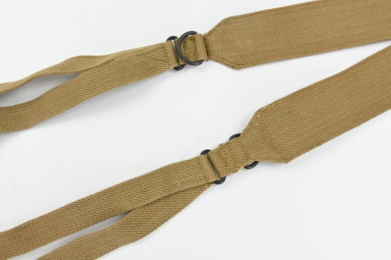 In a stunning mint condition a US WW2 M-1936 pair of Suspenders. The suspenders are British Made and maker marked by Meco and 1943 dated. A very stunning set!
