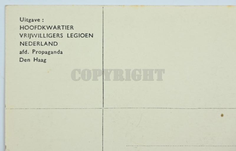 The picture comes in a postcard size and is issued by the Headquarters of the Dutch Volunteer Legion in The Haque.