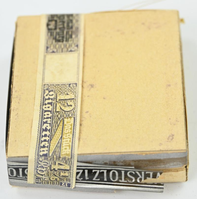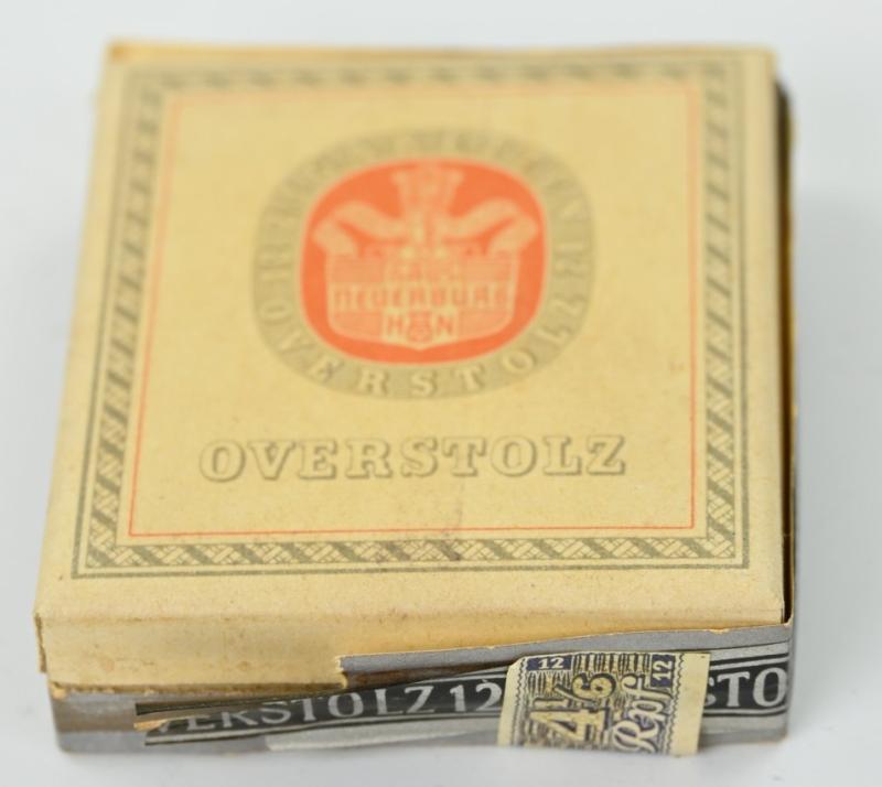 In a very good condition a package of German Third Reich Era Cigarets made by Overstolz. The package comes with the original content inside.