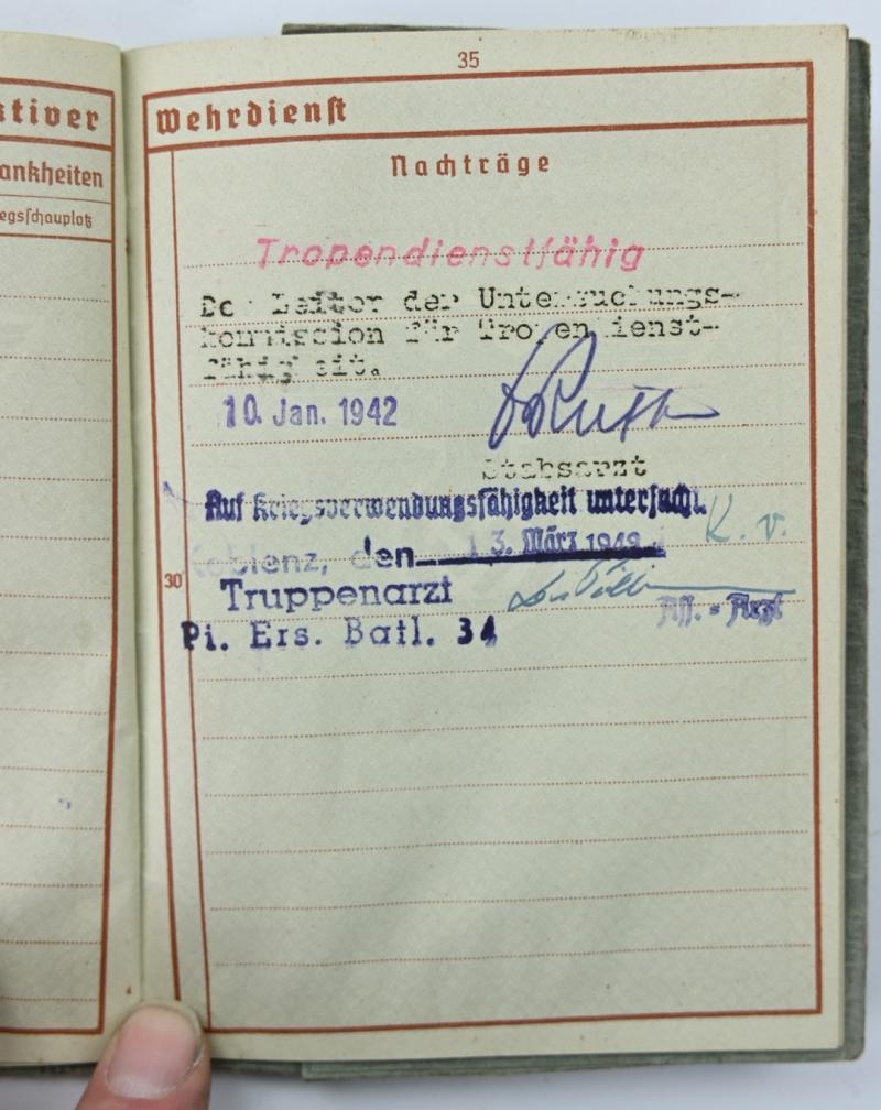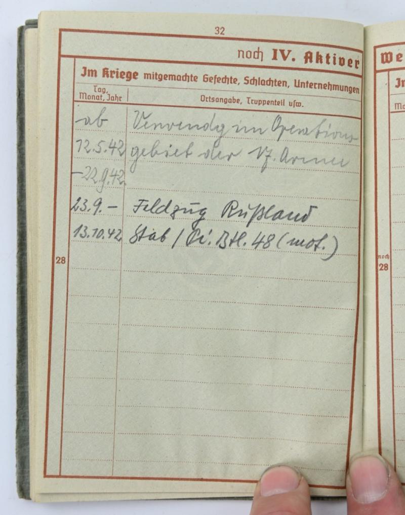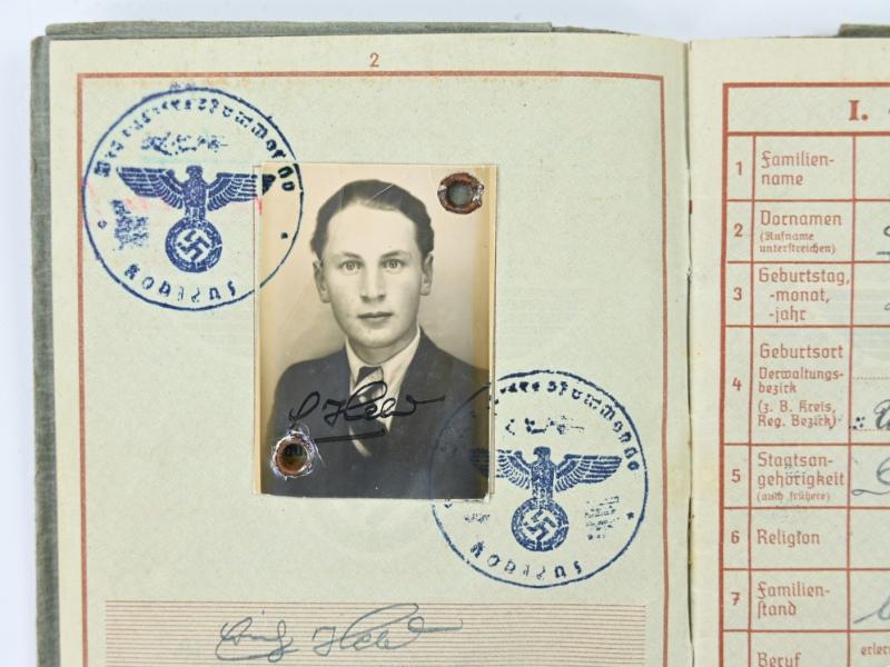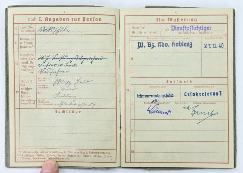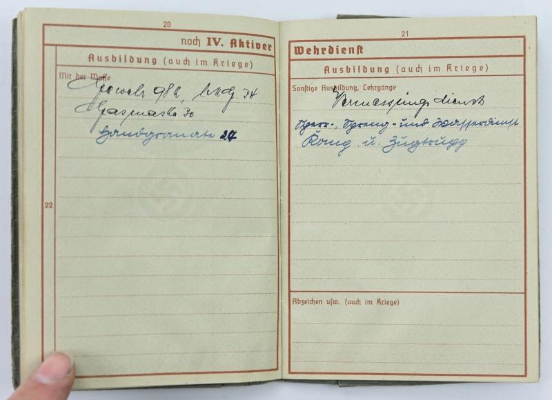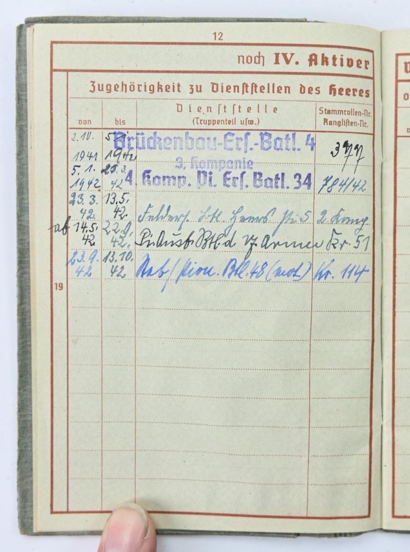 In a very nice condition a German Wehrmacht (Heer) Wehrpass on the name of a member of the Pioneer Battalion 48. Gefreiter Held was killed by grenade schrapnel on 13 October 1942 on the russian front.