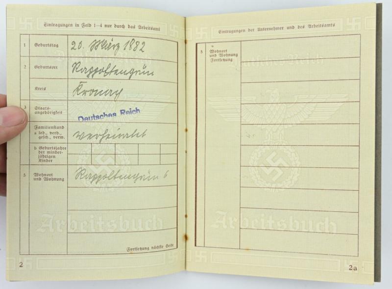 In a very good condition a German Third Reich 'Arbeitsbuch' Workerspass. The pass is dated 1939.