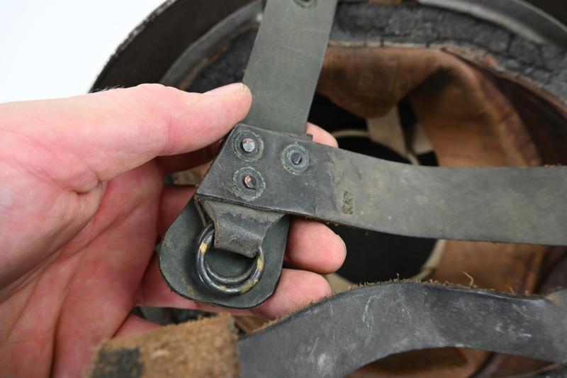The helmet comes in the original paint and has original attached the lining, leather chinstraps and the padding.