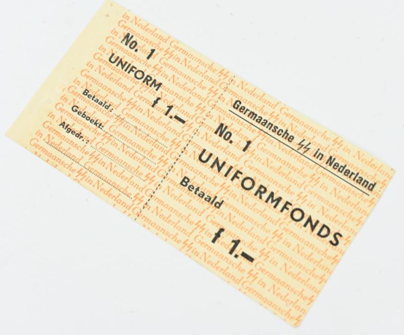In a very good condition a Dutch Waffen-SS Uniform Collecting Coupon. The coupon has a value of 1 Gulden and could be used for uniform purchasing.