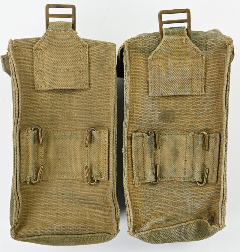 In a very nice used condition a matching set of British WW2 Blanco Basic Pouches. The pouches are both equal wartime blanco and have traces of the maker marking on the inside.