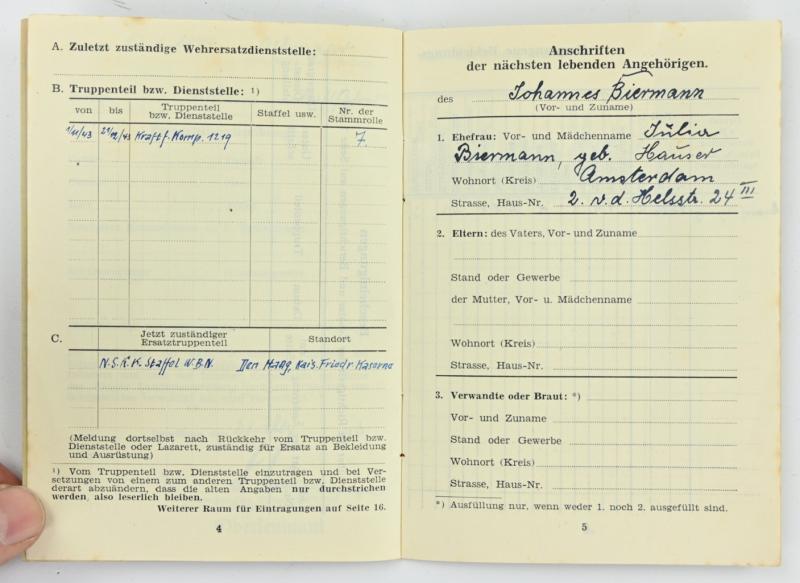 In a very good condition a stunning Dutch NSKK (Nationalsozialistische Kraftfahrkorps) Memberpass on the name of Kraftfahrer Johannes Bierman from Amsterdam.