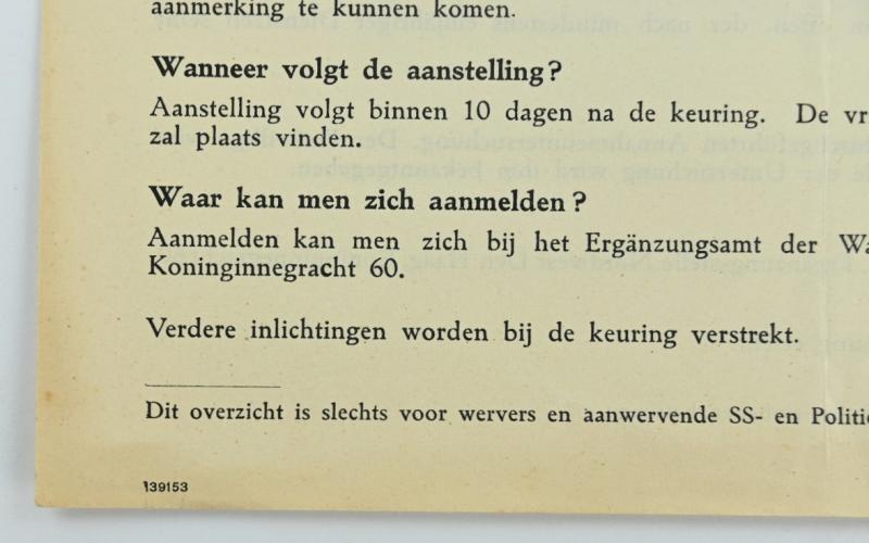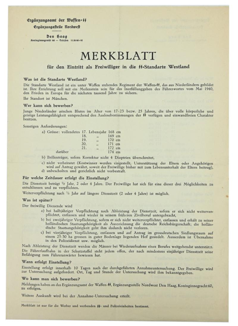 In a very good condition and hard to find a Dutch Waffen-SS Recruitment Form for the SS Standarte Westland. The form comes in a very good condition. A stunning item for display!