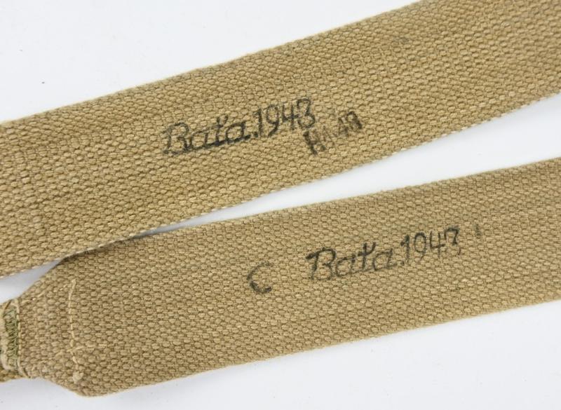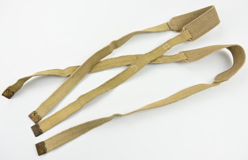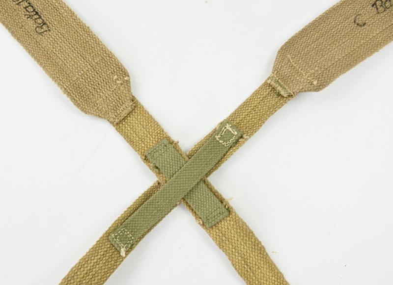 In a very nice condition a British Ww2 Webbing (X) Straps. The straps are maker marked and 1943 dated.
