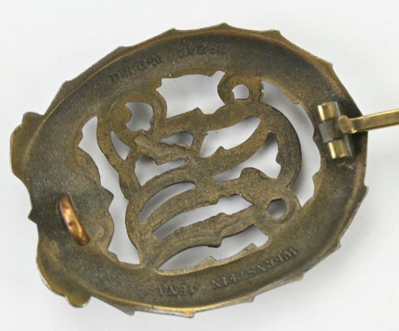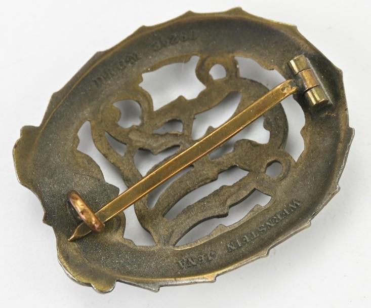 In a very good condition a German DRL ("Deutsches Reichsabzeichen für Leibesübungen") Sports badge in Bronze. The badge comes with the maker marking on the reverse side by Wernstein from Jena.