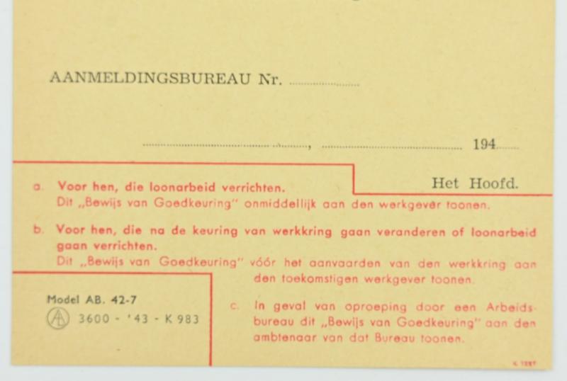 In a very good condition a Dutch NAD (Nederlandse Arbeitsdienst) Member Application Form. The form is dated 1943.