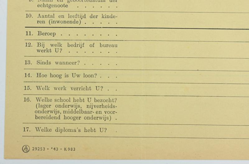 In a very good condition a Dutch NAD (Nederlandse Arbeitsdienst) Member Application Form The form is dated 1943.