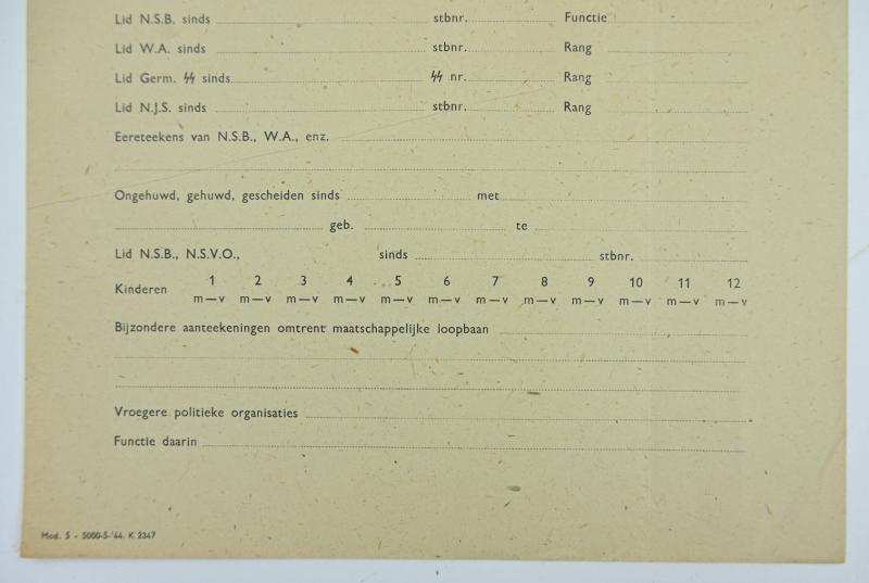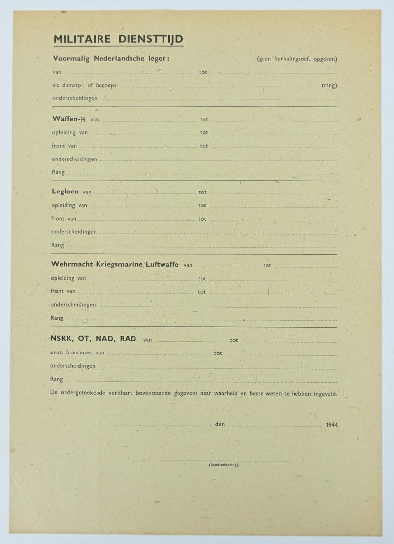 In a mint condition a stunning Dutch SS Landwacht Nederland Member Application Form. The question list is dated 1944.