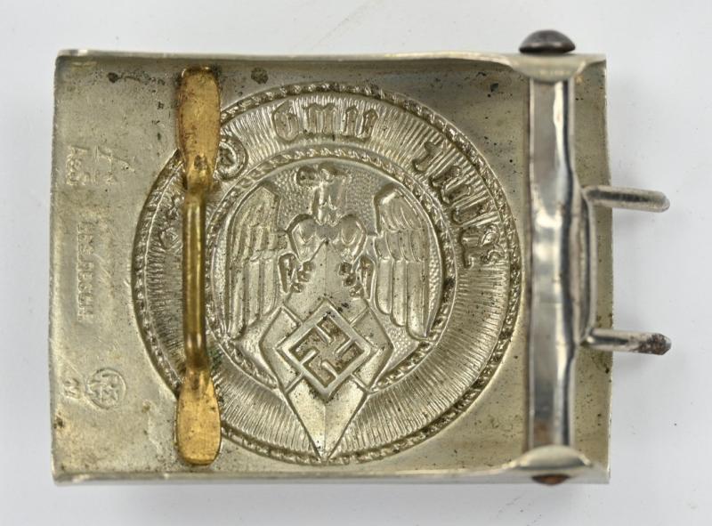 In a very good condition a German HJ Beltbuckle. The beltbuckle is made in nickle-silver and is marked with RZM 17 indicating production by Assmann & Sohne A very stunning beltbuckle!