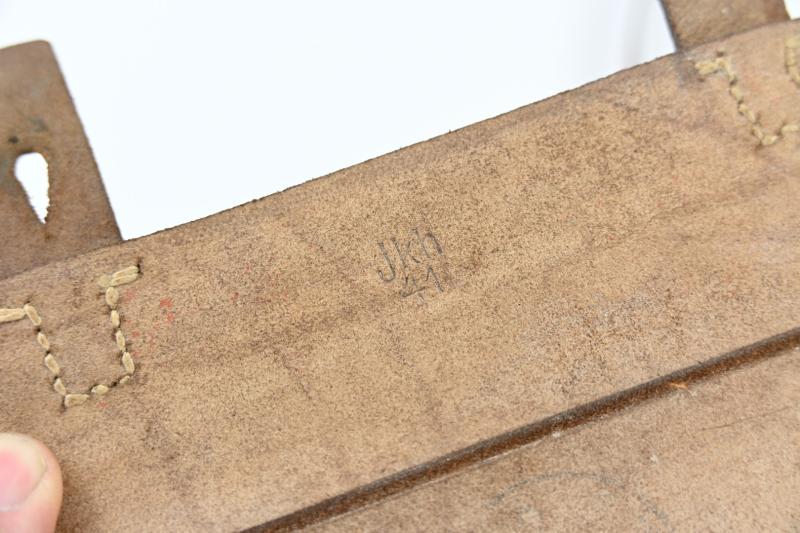 The brown leather set is nicely maker marked by JKH and is dated 1941.