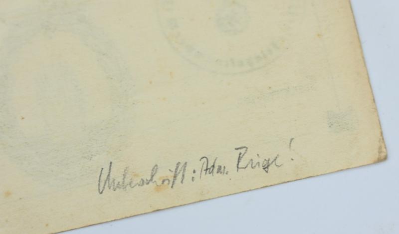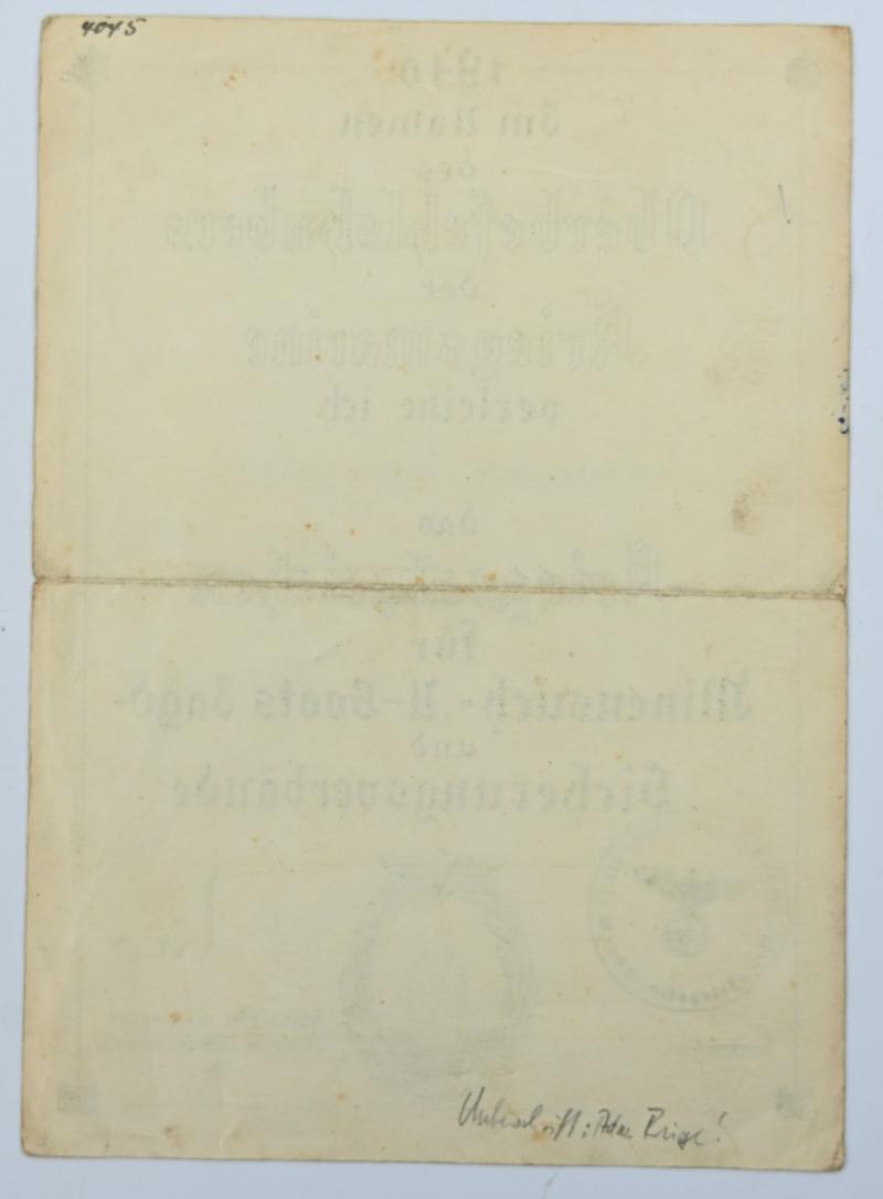 The certificate comes with the signature of Knights Cross recipient Konteradmiral Friedrich Ruge.