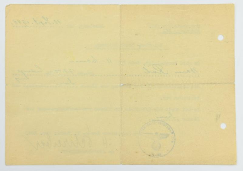 In a very nice condition a SS-Totenkopf Drivers License Certificate KFZ. The ceritifcate is dated 1940.