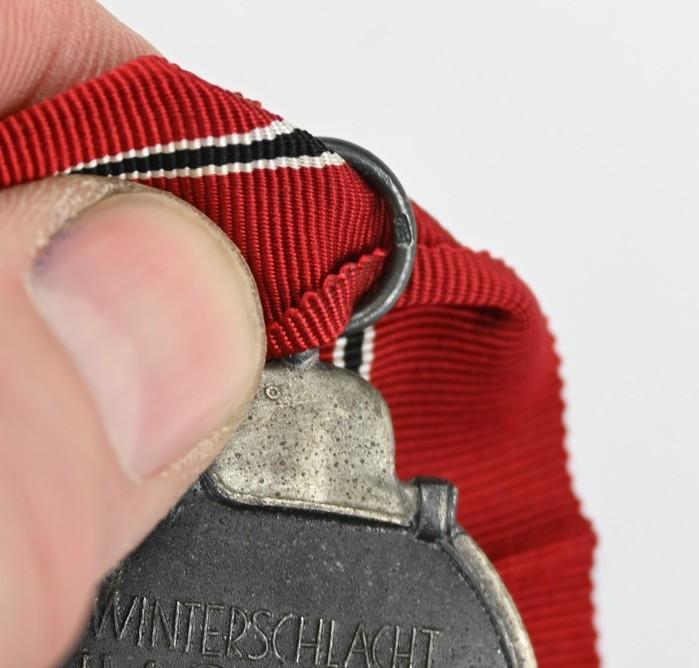 In a very good condition a German Wehrmacht Eastern Front medal The medal is nicely number marked on the ring '13' indicating production by Gustav Brehmer from Markneukirchen.