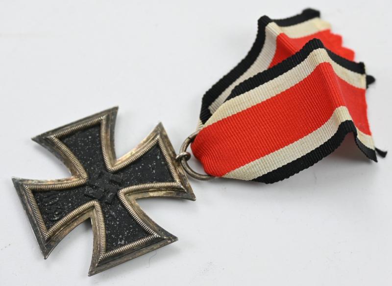 In a very good condition a German WW2 Iron Cross 2nd Class (or Eiserne Kreuz 2.Klasse) The cross comes without maker marking. It's complete with the attached ribbon.