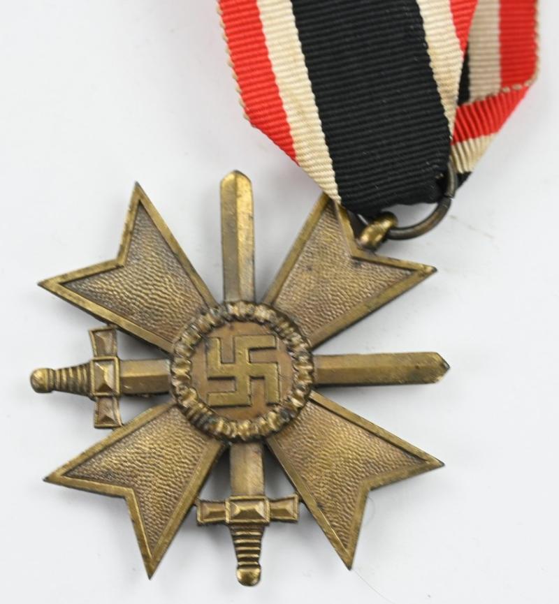 In a very nice condition a German WW2 War Merit Cross 2nd Class with Swords. The cross comes without maker marking but with the original ribbon.