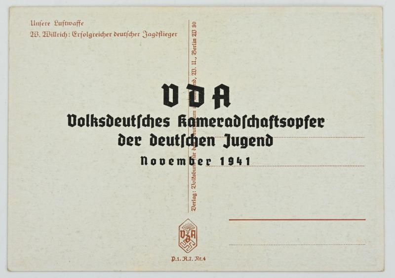 In a very nice condition a German Luftwaffe Postcard 'Unsere Luftwaffe'. The postcard comes with a jagdflieger on the front made by Willrich.