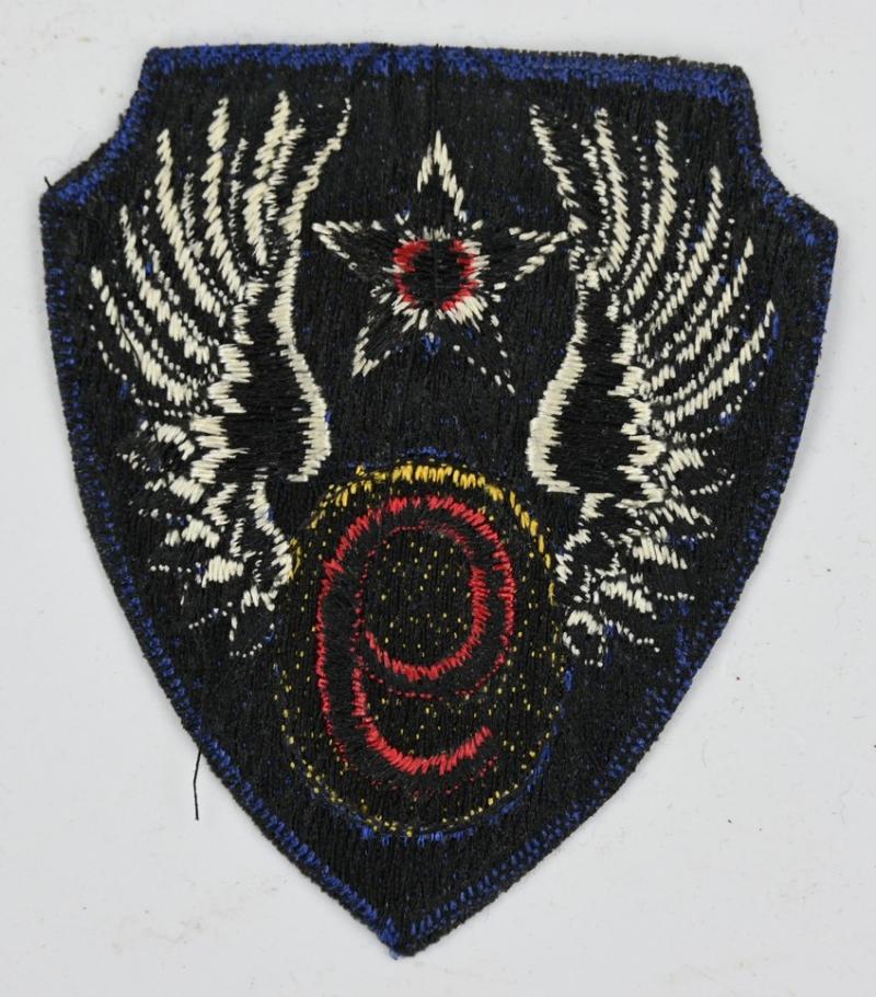 In a very good condition a US Army Airforce, 9th Airforce Shoulder Sleeve Insignia British Made. Well known Air Force Central that became famous from there effort during D-Day!